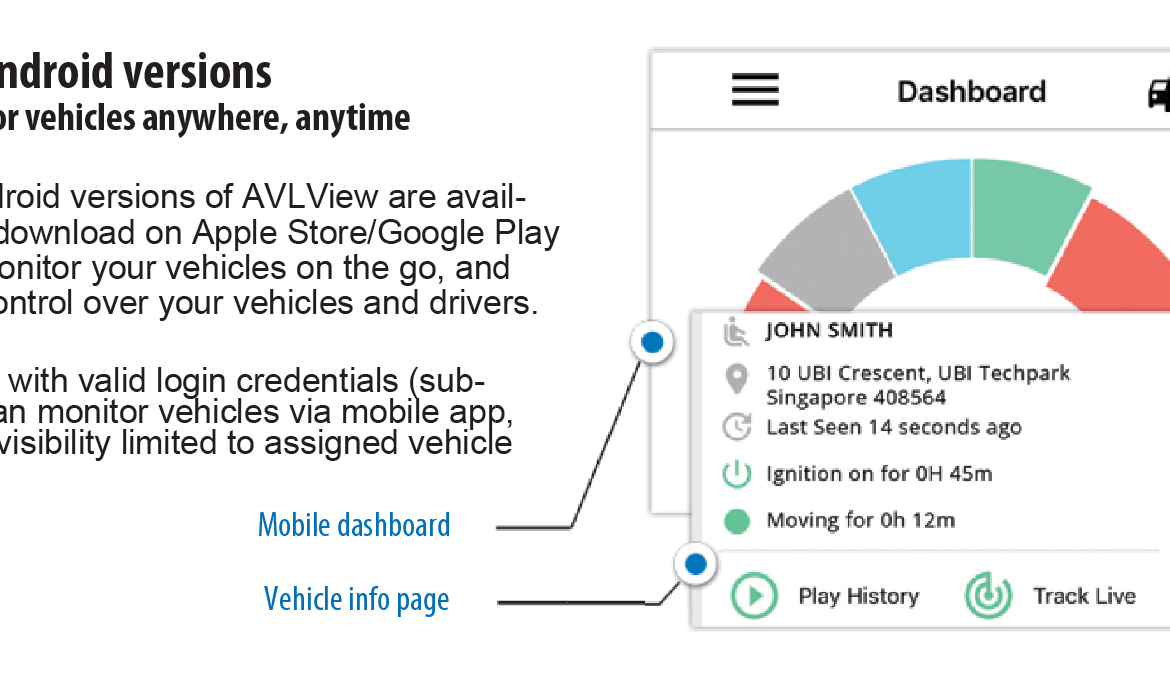 iOS, Android versions of AVLView are available for download on Apple Store/Google Play Store. Monitor your vehicles on the go, and regain control over your vehicles and drivers.